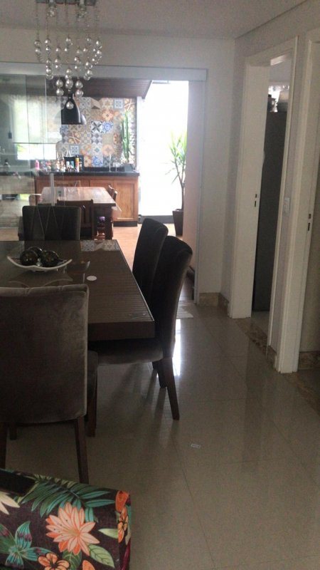 *Sobrado em condomínio fechado, portaria 24 horas, 3 dormitórios, 1 suíte com armários planejados, 2 banheiros, lavabo no térreo, 2 vagas, sala em "L" para 3 ambientes, cozinha, churrasqueira, quintal e área de serviço nos fundos e corredor lateral. Lazer com piscina, churrasqueira e salão de festas. -
