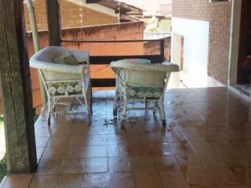 Bem , minha casa fica na praia das Toninhas 400m da praia Ela tem 140 m de área construída Sala de estar grande Sala de jantar Cozinha Banheiro social 3 quartos/ uma suíte Garagem Varanda com churrasqueira Casa de caseiro completa: quarto, sala com cozinha americana, banheiro Mobiliada, cozinha recém reformada, com eletrodomésticos. Rua calçada e ligação de esgoto