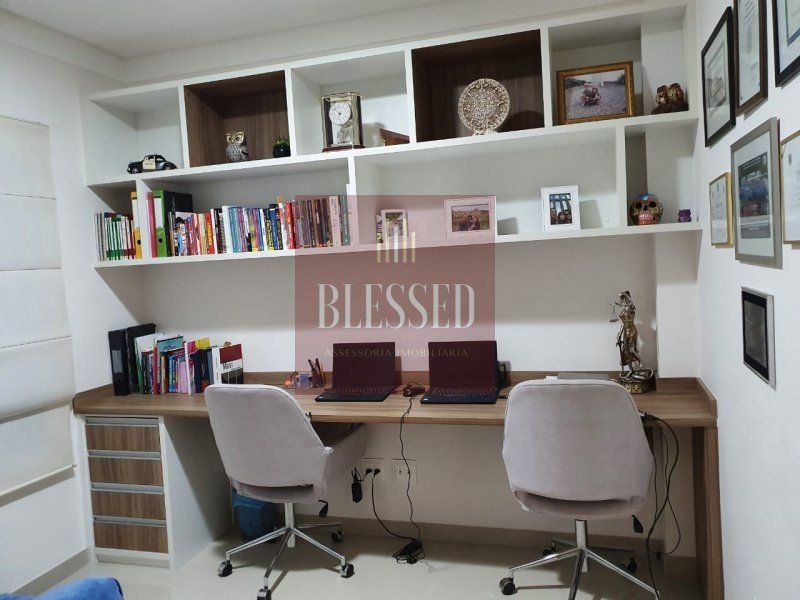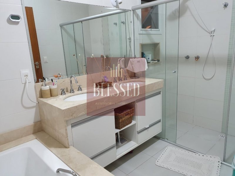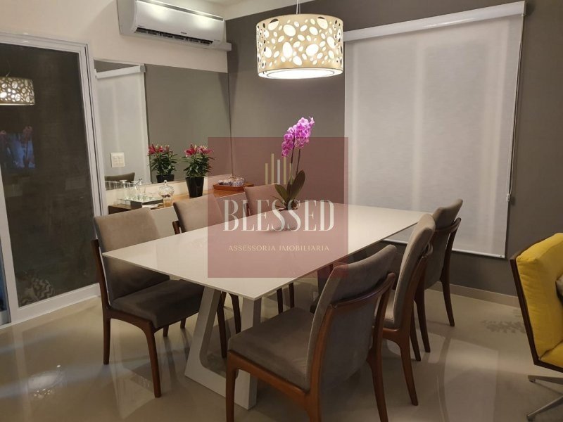 Casa com 4 suítes, pia e banheiro externo, piscina com aquecimento solar, quarto externo, área gourmet com churrasqueira, escritório, sala de jantar e estar conjugados, hall de entrada, cozinha planejada, despensa, área de serviço e hobby box, garagem para 2 veículos. imóvel repleto de roupeiros e ar condicionado em excelente localização no condomínio