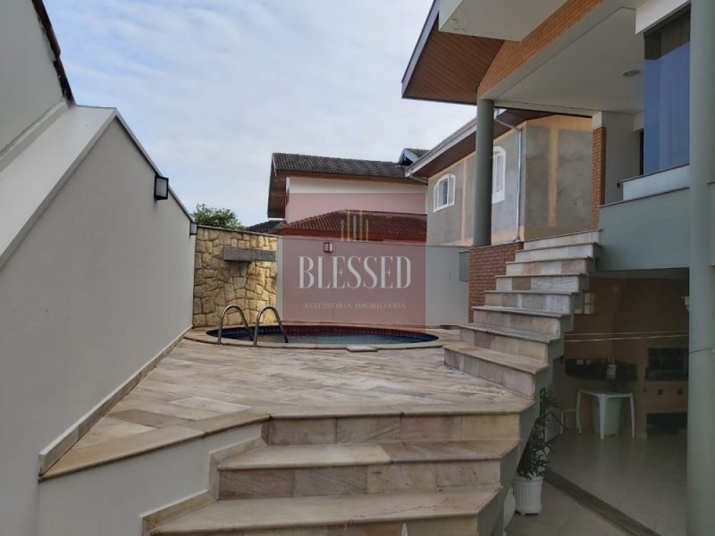 sobrado de alto padrão no Condomínio Jardim das Colinas em São José dos Campos. Piso inferior com ampla sala ,3 ambientes, cozinha com armários, despensa, lavabo, área de serviço com dormitório completo. Área de Lazer com churrasqueira, quintal e excelente piscina com cascata. Piso superior com 4 dormitórios (todos com armários) sendo: 4 suítes master com closet, 1 suíte com banheira de hidromassagem. Sobrado bem arejado e com bastante iluminação natural, cômodos amplos e aconchegantes, rico em detalhes de madeira de alta qualidade, banheiros completos, paisagismo externo.