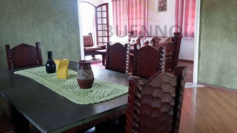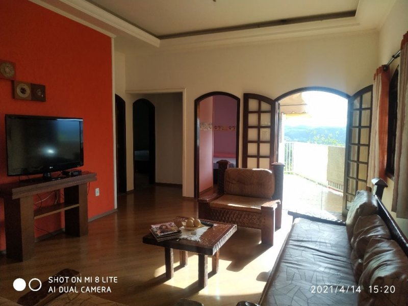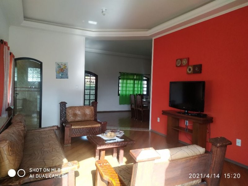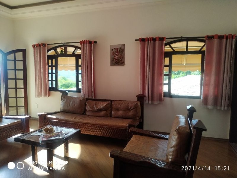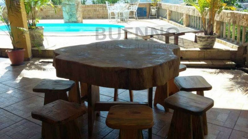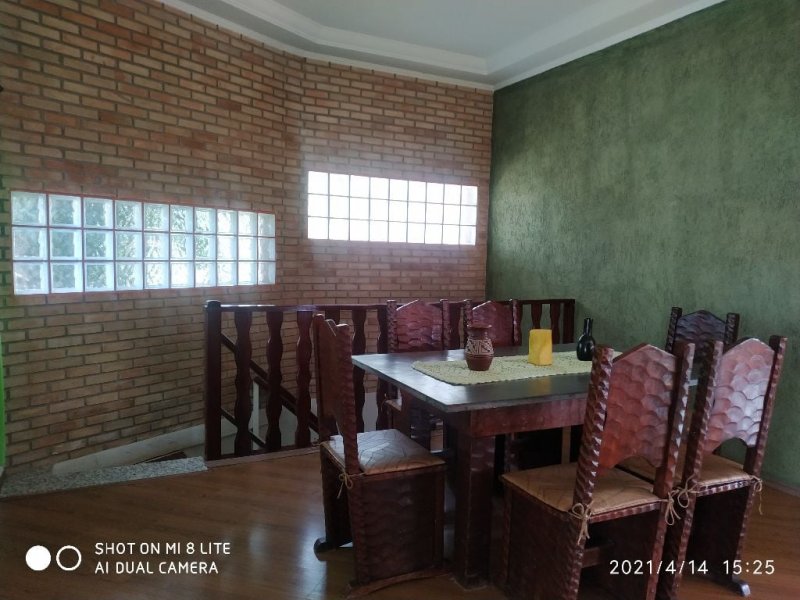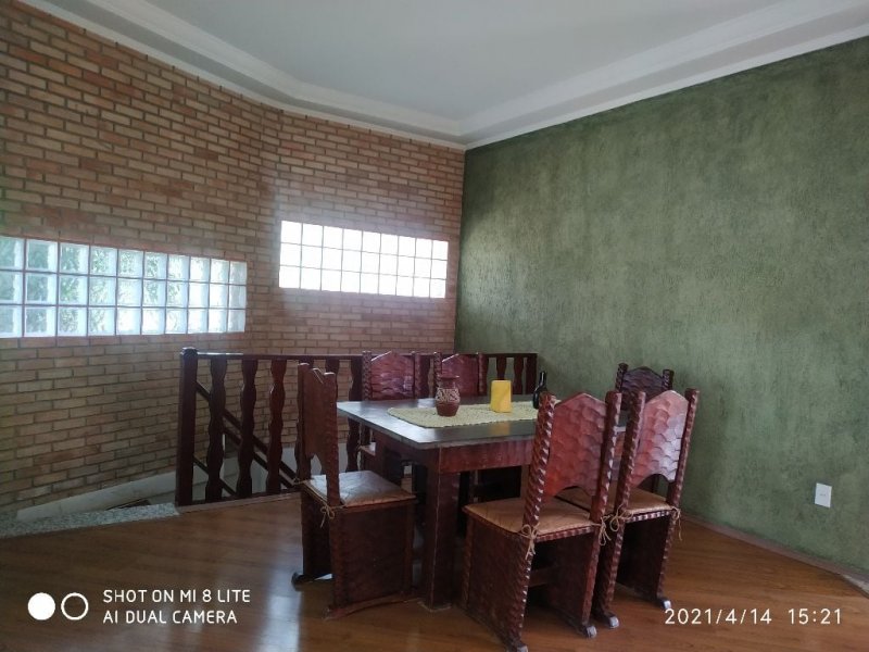 4 dormitórios sendo uma suíte, cozinha convencional e caipira, sala de jantar e sala de estar, piscina e churrasqueira com fogão à lenha.