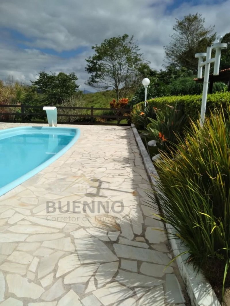 2 Dormitórios sendo uma suíte, sala dois ambientes, cozinha com fogão a lenha, um quarto com banheiro, nascente, piscina, churrasqueira e galinheiro.