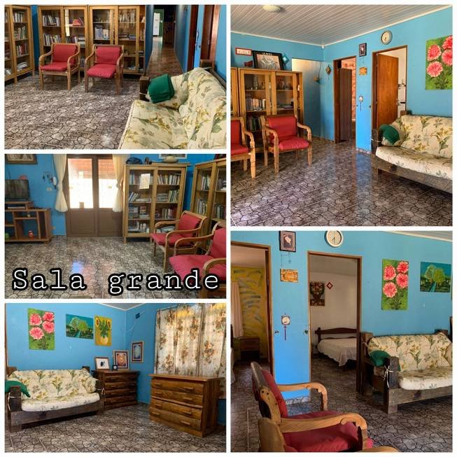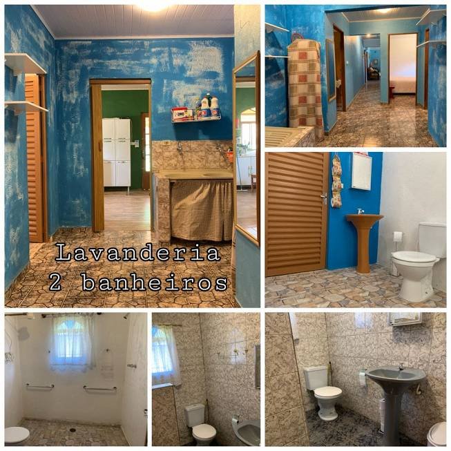 Existe uma casa grande simples, precisando de algumas reformas, com 4 quartos, dois banheiros, 2 varandas, sala, cozinha, copa, despensa, fogão de lenha com serpentina.