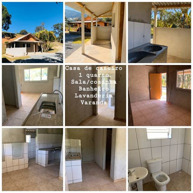 Casa de caseiro com 1 quarto, banheiro, sala/cozinha, varanda e lavanderia.