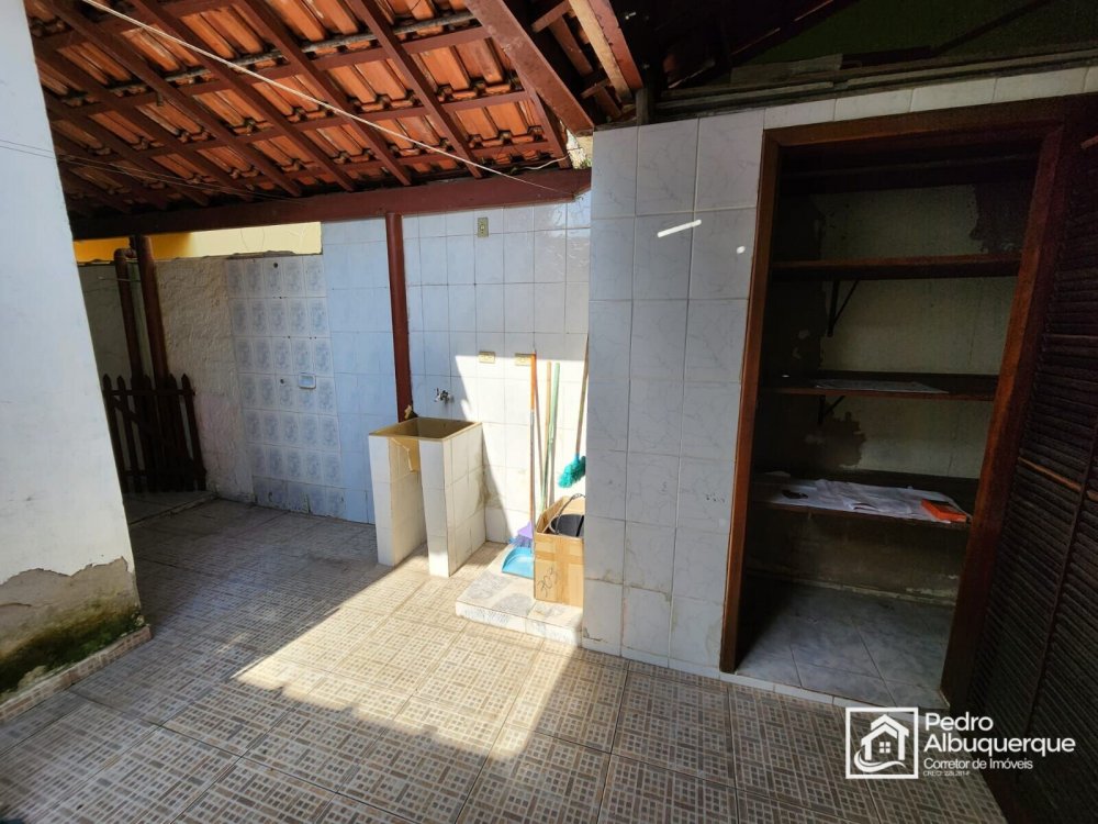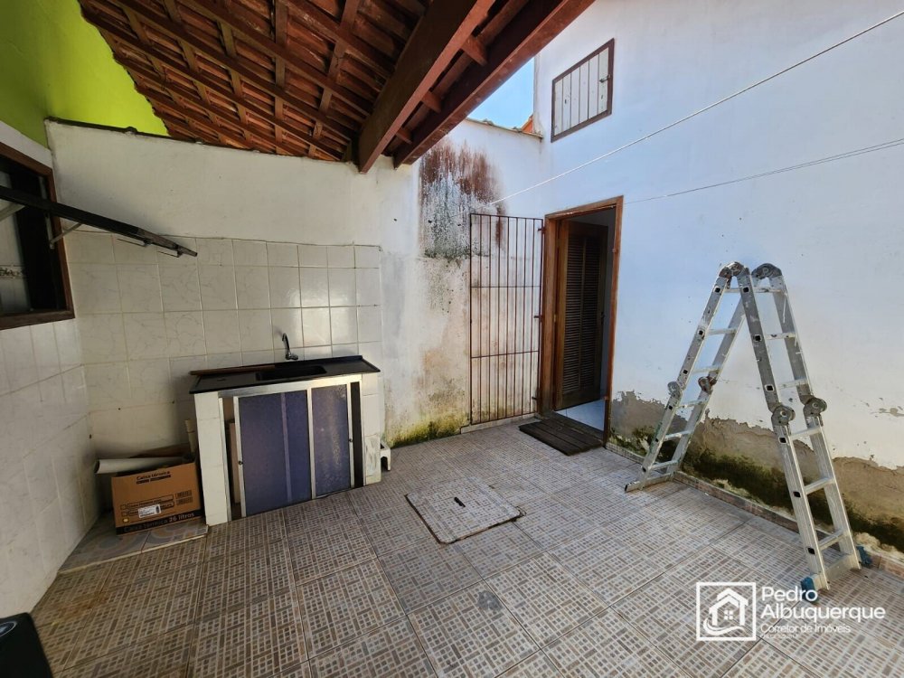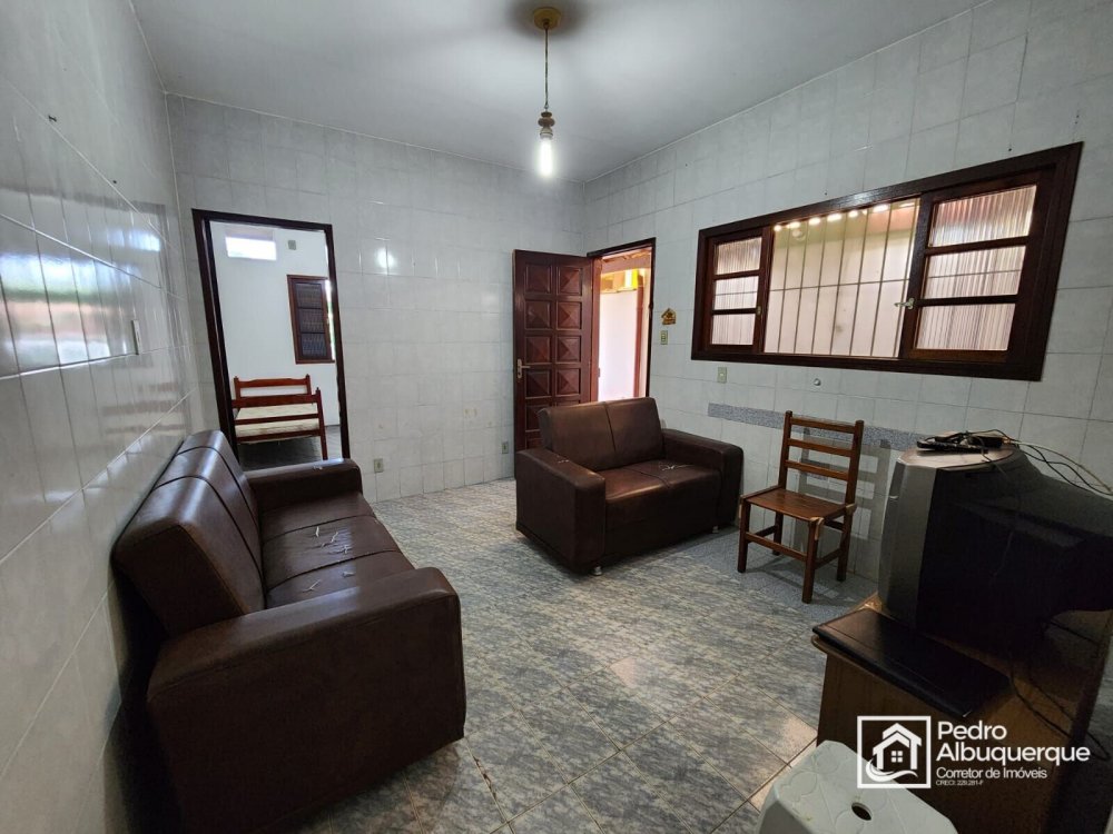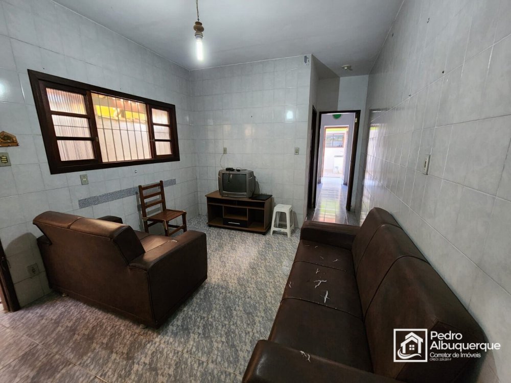 Casa térrea com 2 quartos, 2 banheiros, sala de estar e jantar, área de serviço e cozinha.