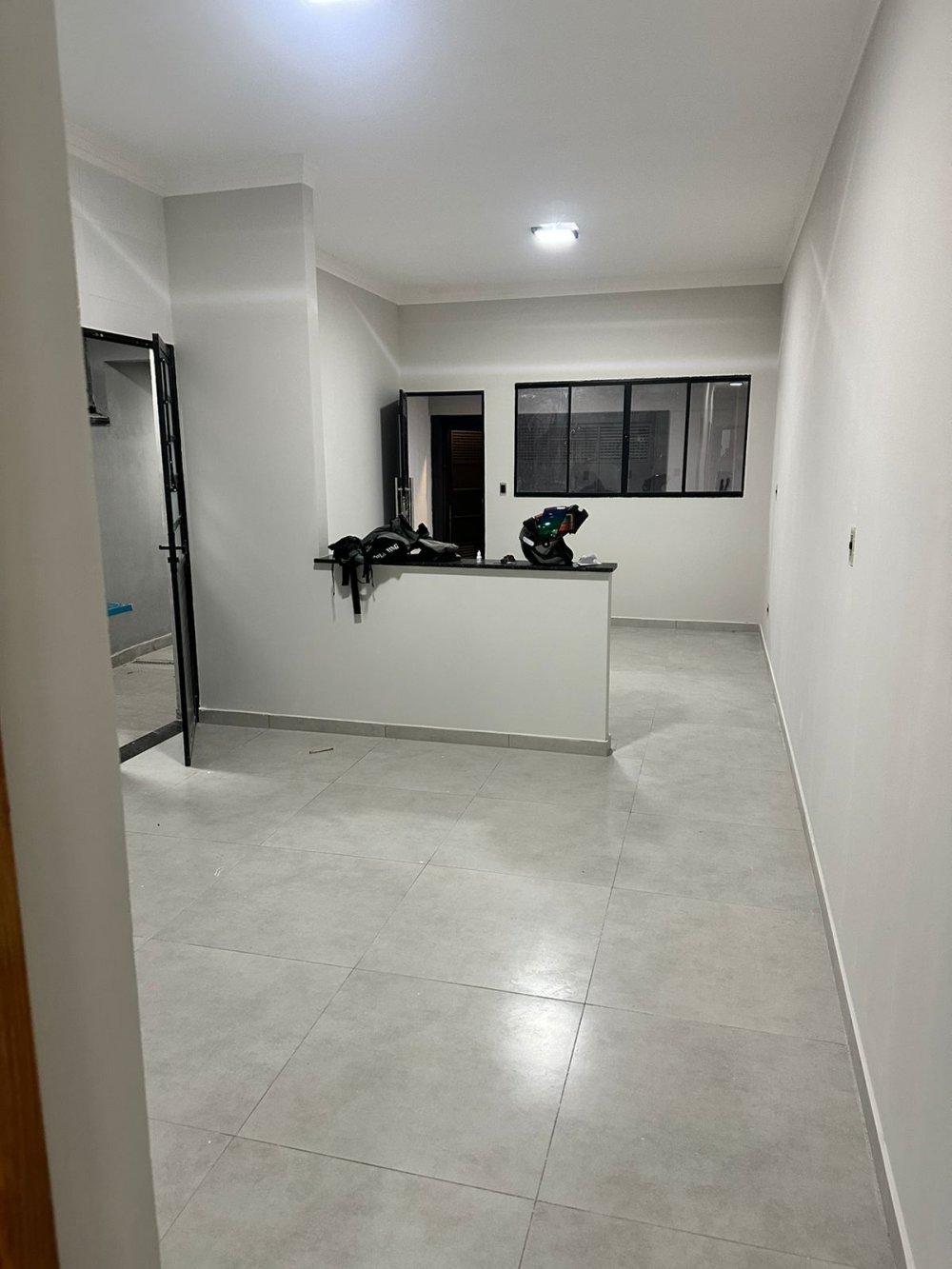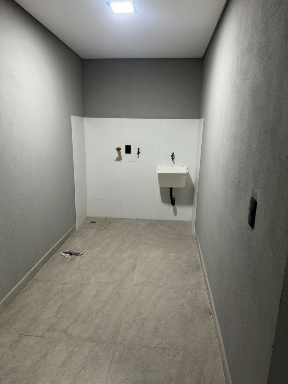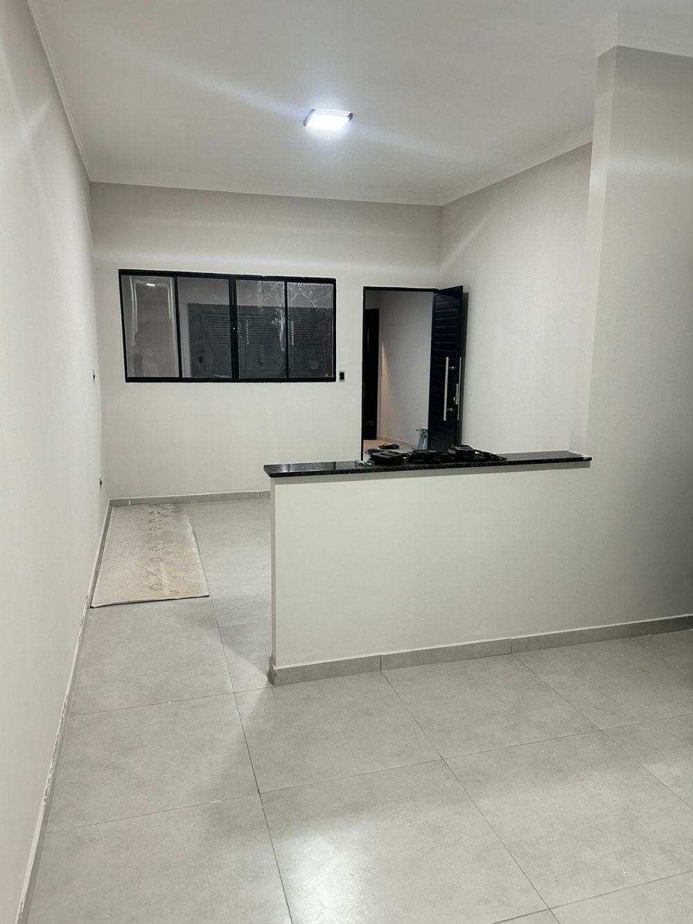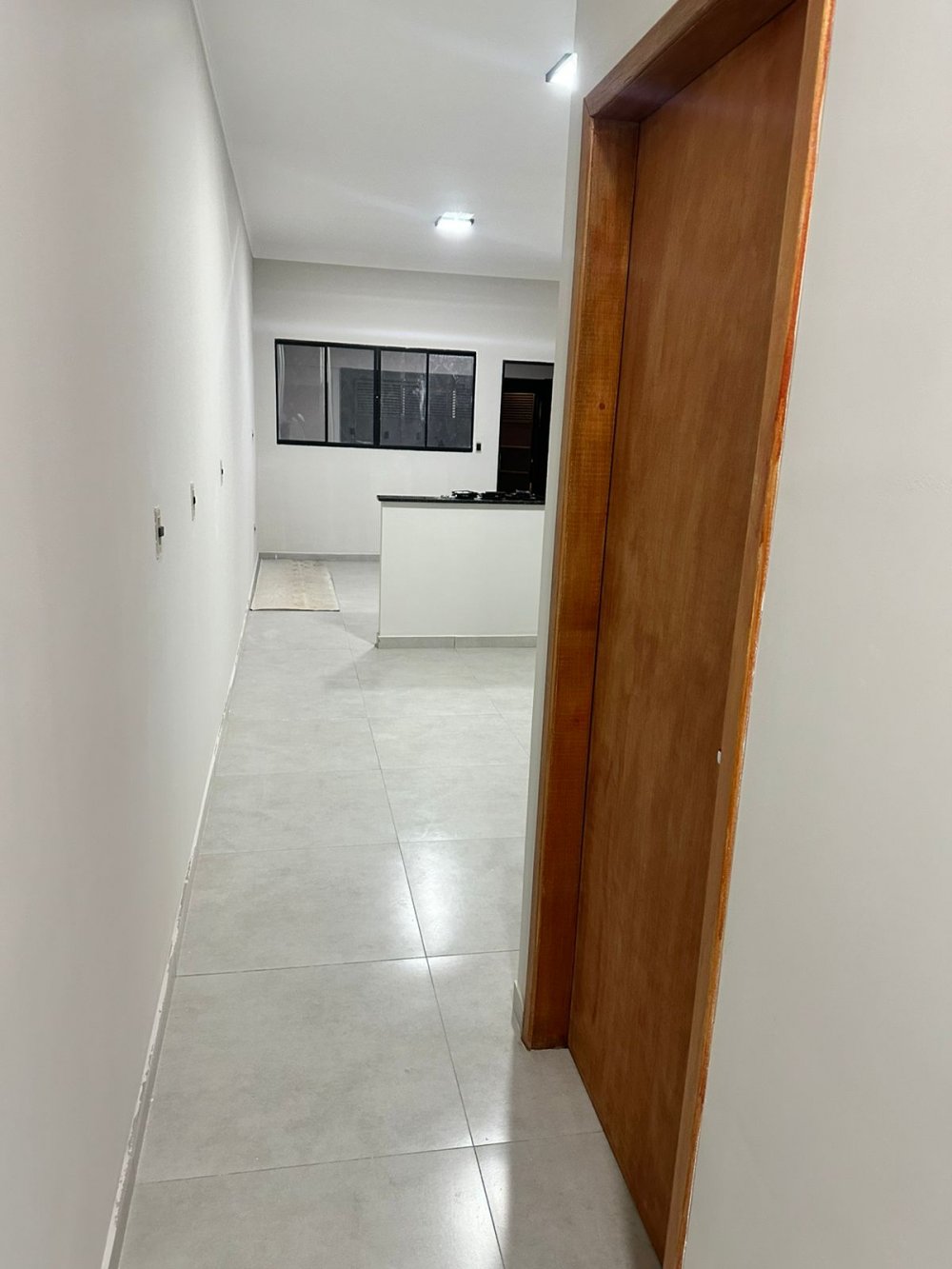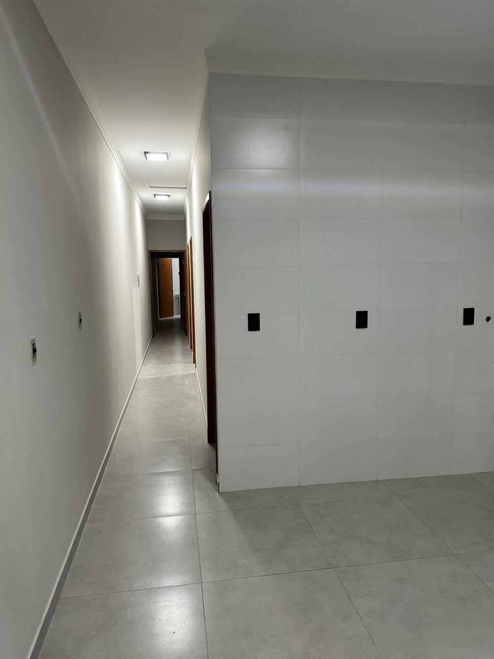 Casa Nova com sala, cozinha americana, wc, 3 dormitórios sendo um com suíte, garagem pra dois carros e lavanderia, ambos coberta.